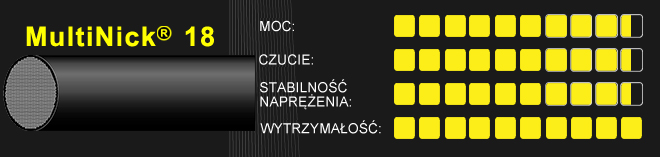 Naciąg squashowy MultiNick® 18 łączy w sobie włókna nylonowe o dużej wytrzymałości na rozciąganie z unikalną powłoką z żywicy poliuretanowej.