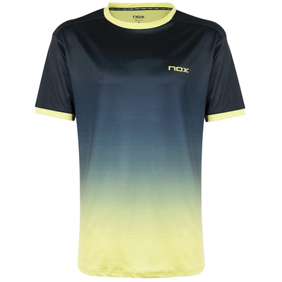 Koszulka z lekkiej tkaniny z technologią NOX „Balance Fresh”, która zapewnia maksymalny komfort podczas gry. Wykonana w 90% z poliestru i 10% elastanu. Krótki rękaw i dopasowany krój. Z boku z siateczki, które ułatwiają wentylację. W tonacji granatowej zdegradowanej do limonkowej żółci.