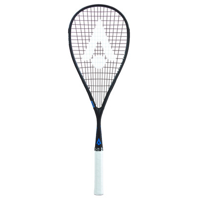 Rakiety do squasha Karakal Air Series posiadają ramy z grafitu o wysokim module sprężystości, wykończone biało-niebieskimi naklejkami i uchwytami z poliuretanu.